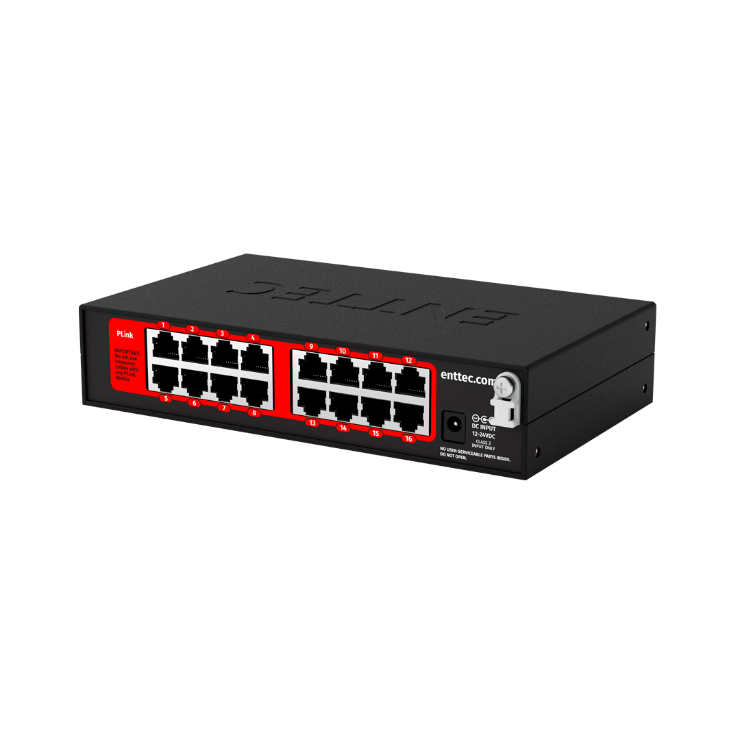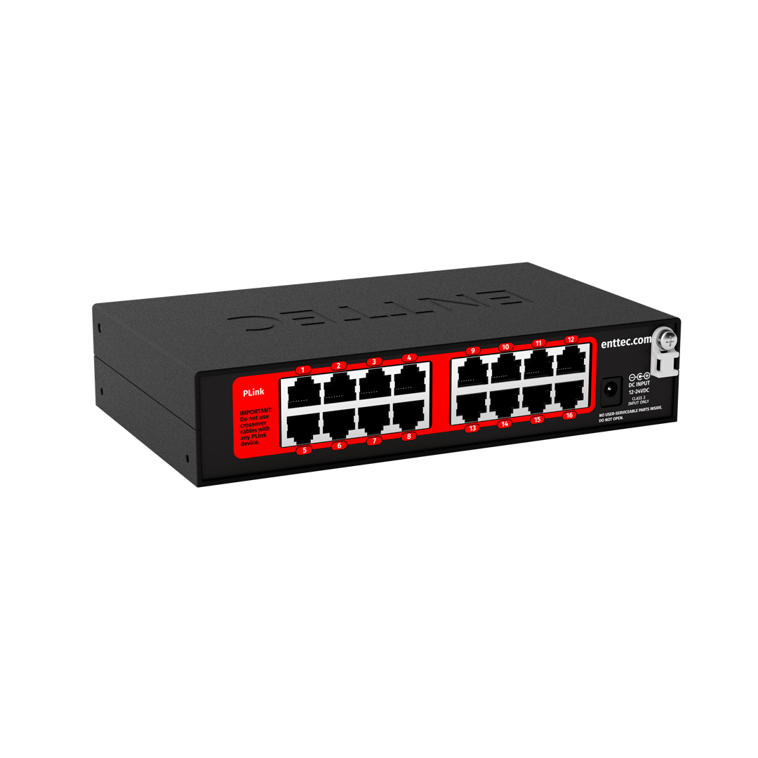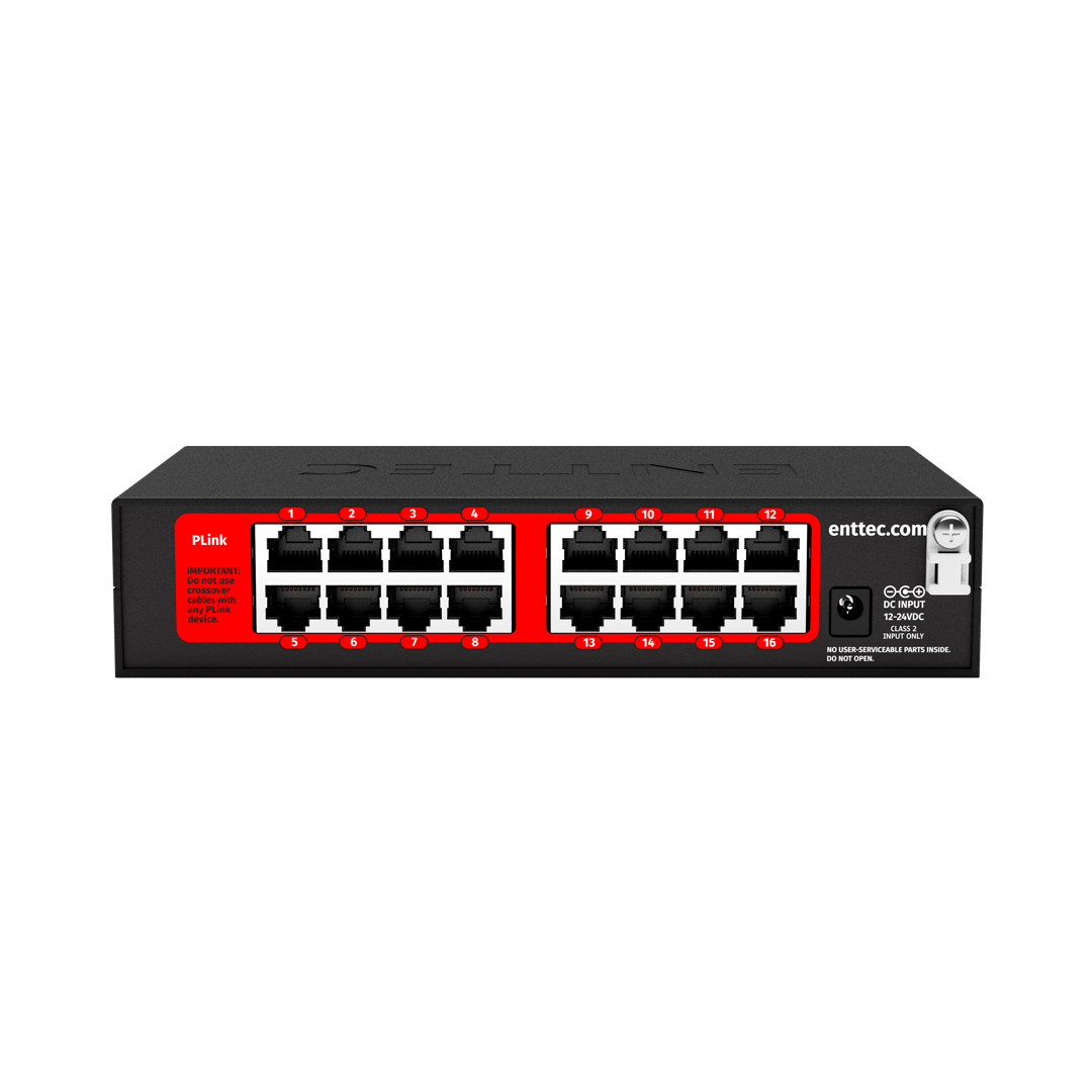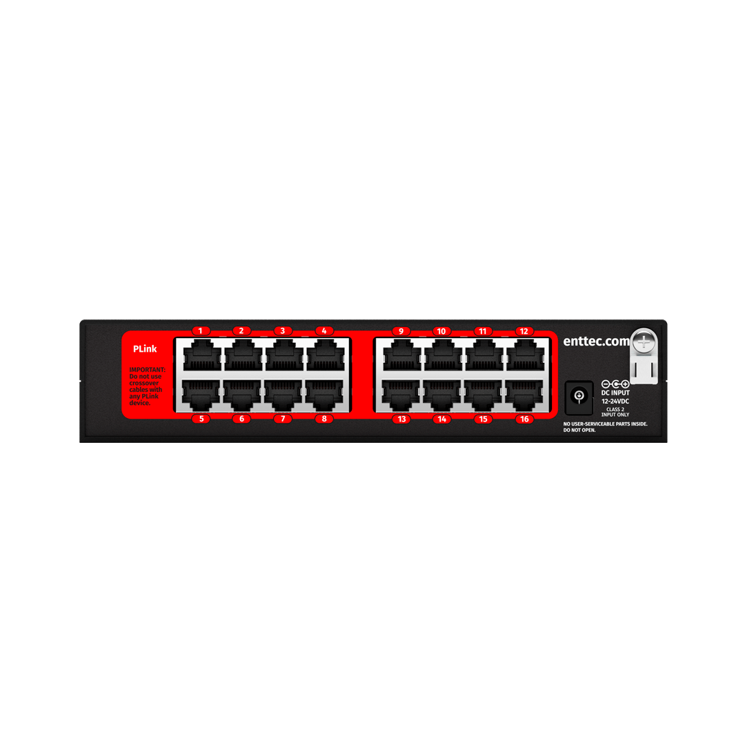 | Connectors | 1 x Power input (DC Jack), 2 x Ethernet (RJ45), 16 x PLINK output (RJ45) |