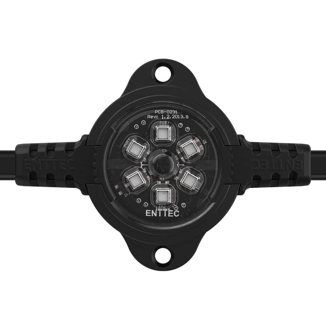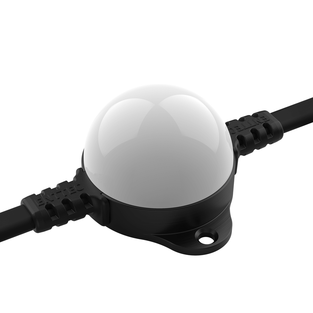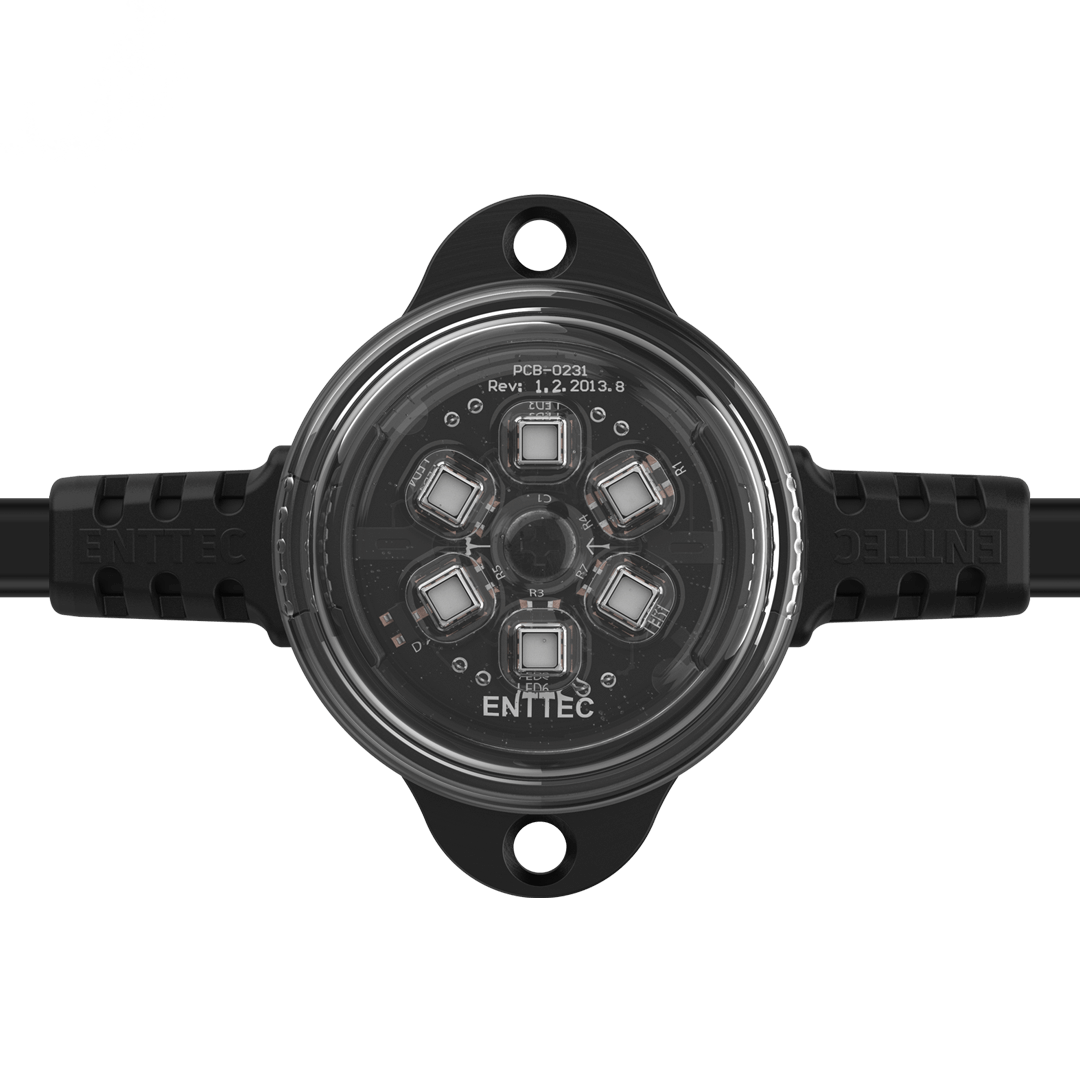 Flexible strings of ultra-bright, high-resolution 41.5mm RGB LED dots with robust, aluminum cases for all-weather use