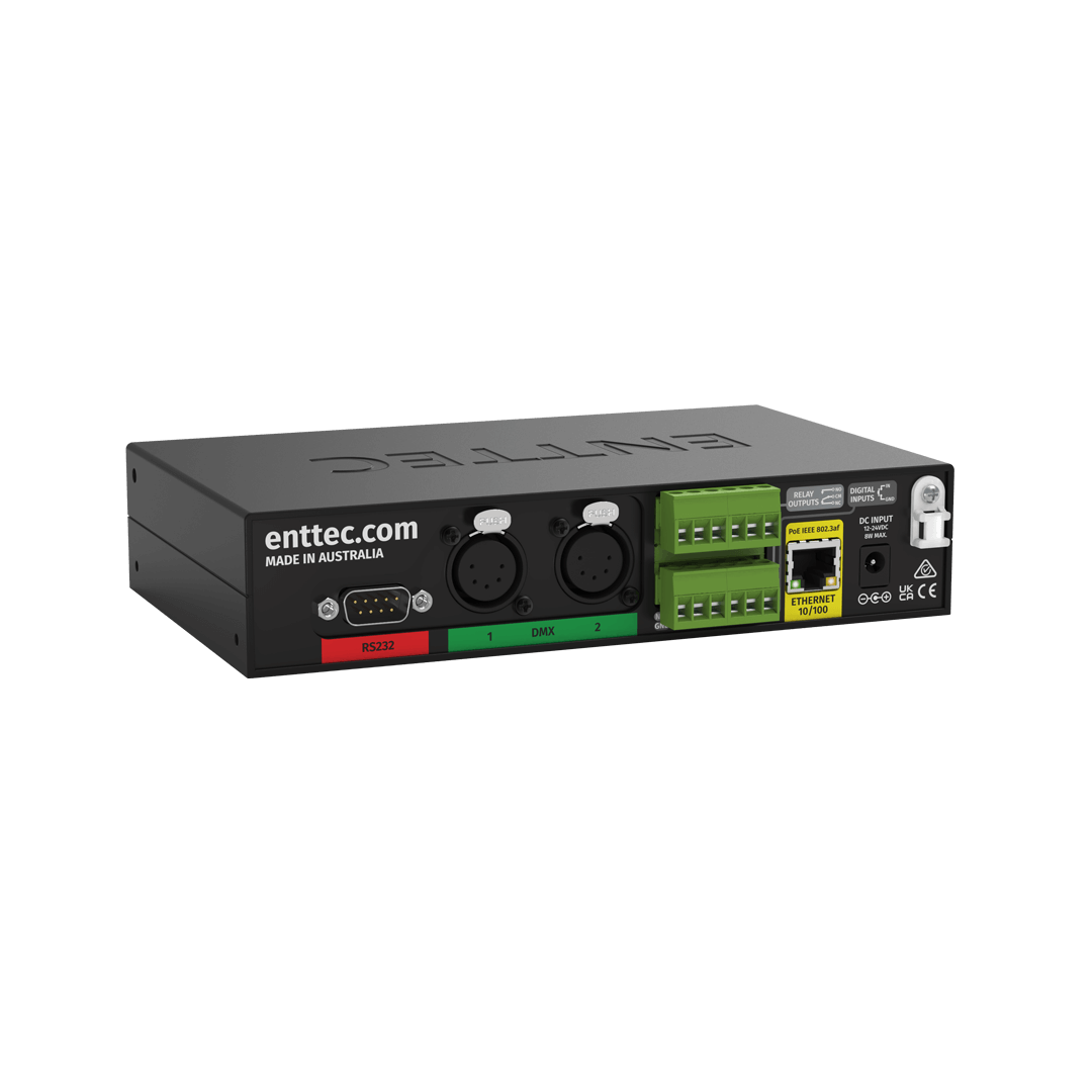 ENTTEC’s S-PLAY LITE is a smart show recorder and playback controller designed for professional, hassle-free light shows and automation. It handles light shows, video, and machinery with precision, allowing for simultaneous playback and flexible mounting. Combining a scene creation engine, 16-universe DMX recorder, and multiple AV protocol host, it also supports custom web interfaces. With its built-in effects generator and intuitive controls, it makes creating impressive shows easy, even for those without extensive lighting experience.