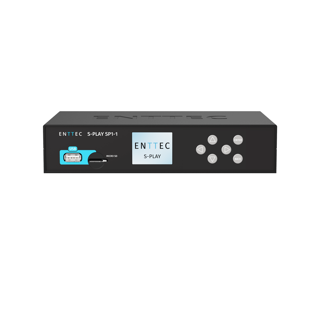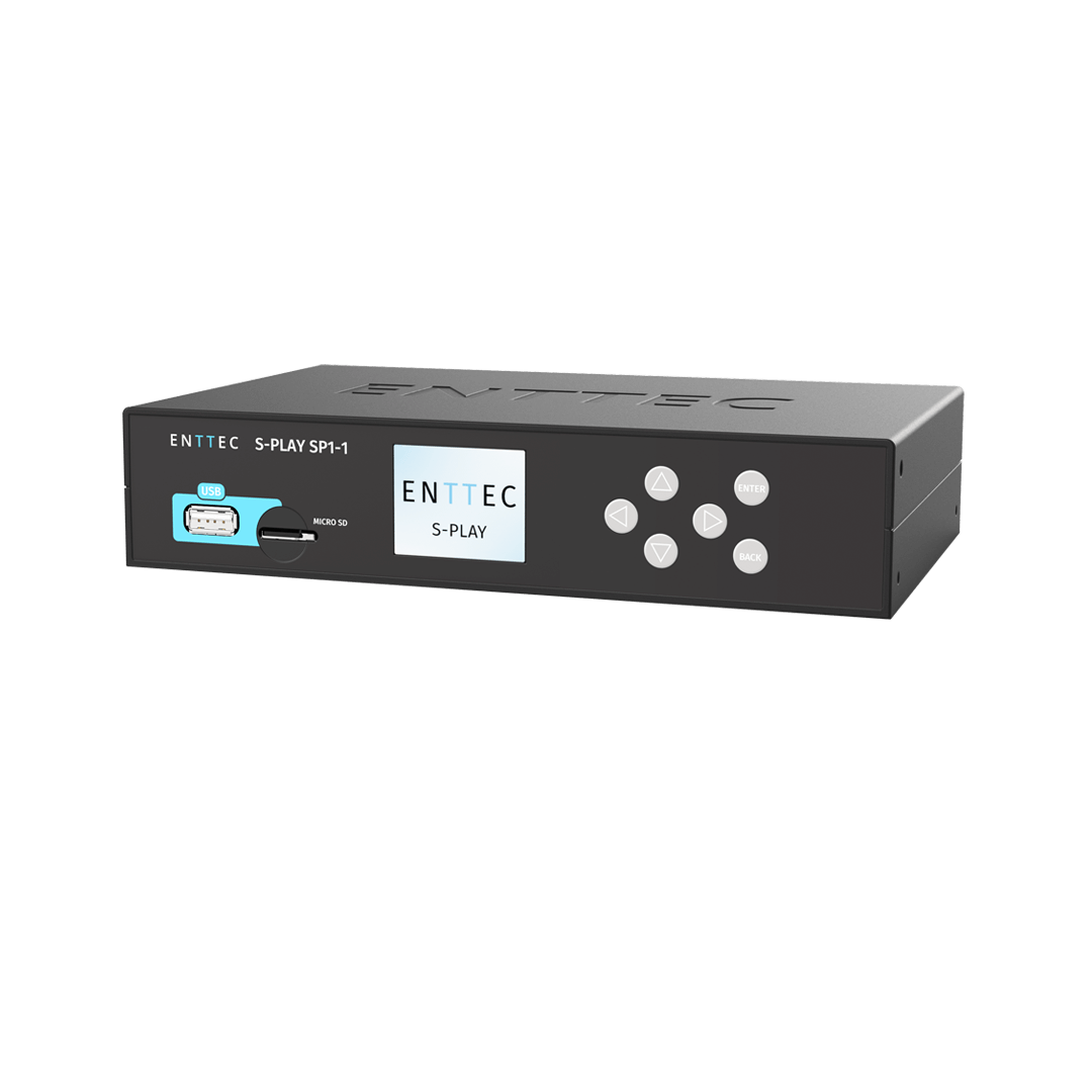 The ENTTEC S-Play SP-1 is a versatile smart show recorder and playback controller, ideal for automated light shows and complex projects. It allows you to create, record, schedule, and trigger light shows, video, and more, all from a single device. With 32-universe DMX recording, custom web interfaces, and a built-in effects generator, it’s easy to use and offers professional results without requiring expert knowledge. Install it anywhere with flexible mounting options and enjoy seamless, multi-show playback.