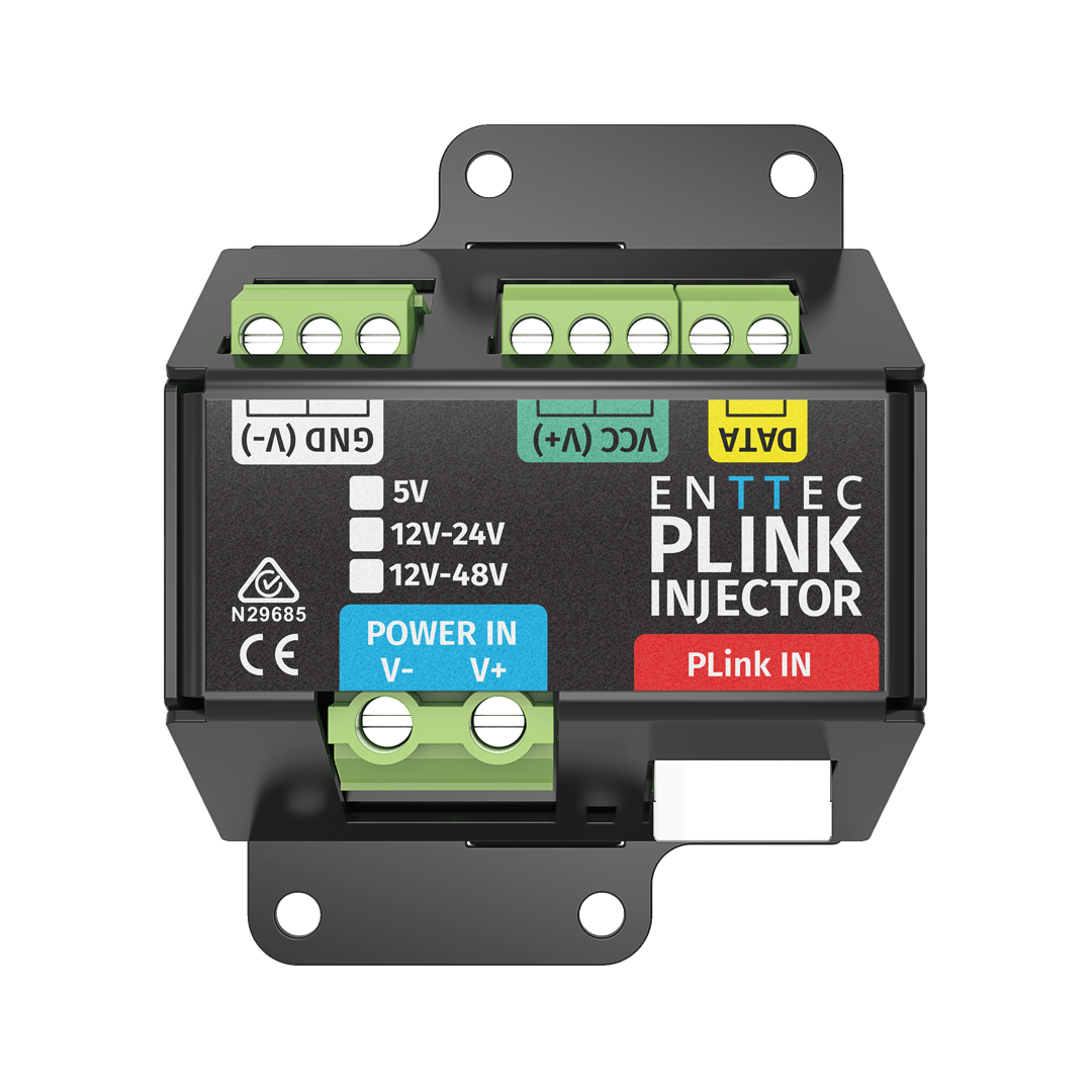 Each PLink Injector converts this data locally into SPI, ensuring clean, accurate output to your LED fixtures.