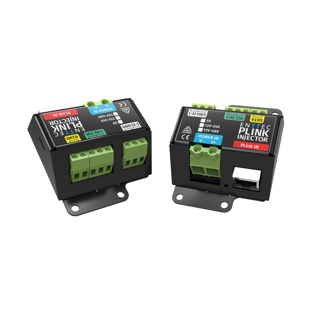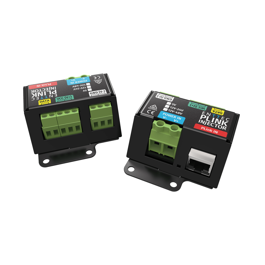 The ENTTEC PLink Injector is engineered to work seamlessly with the Pixelator family, enabling long-distance data transmission and reliable control of LED pixel fixtures across large-scale installations.