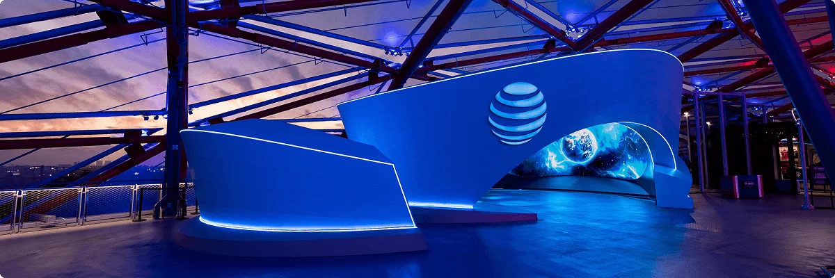 Connectopia is not a traditional attraction. It is a collaborative worldbuilding experience created by Luminary for the AT&T Deck inside Intuit Dome, a space where fans help generate imaginative digital worlds through the power of artificial intelligence and human imagination. What emerges is a constantly shifting landscape of color, atmosphere, and motion that reflects the creativity of the people standing in front of it.